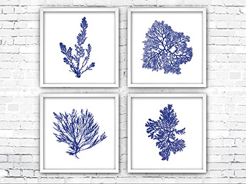 Amazon Com Navy Blue Beach Decor Wall Art Set Of 4 Unframed Art