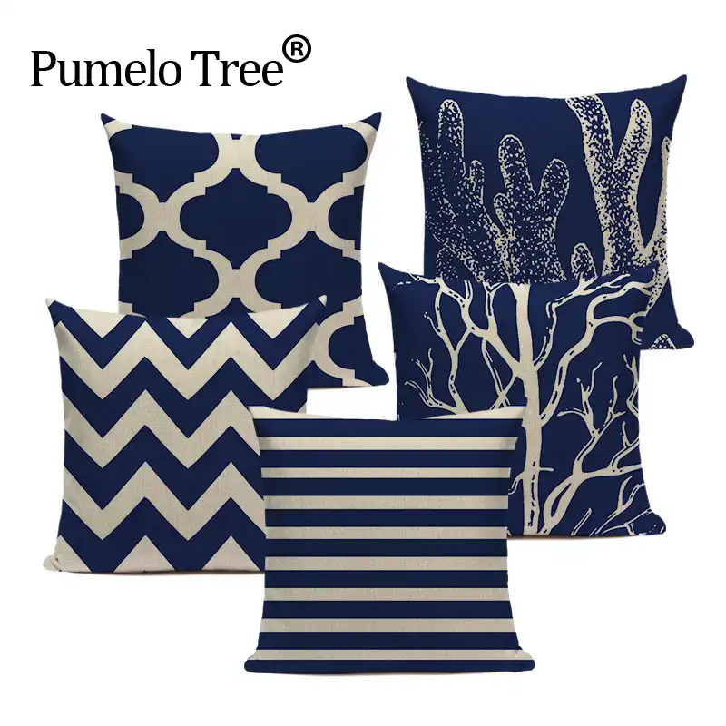 Coastal Pillow Cover Navy Blue Coral Pillow Beach Decorative