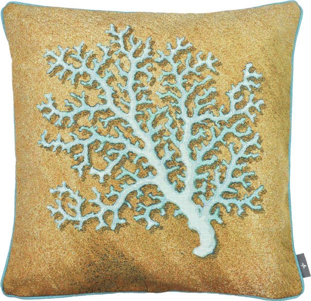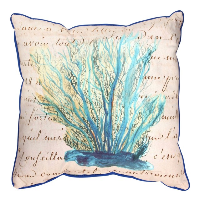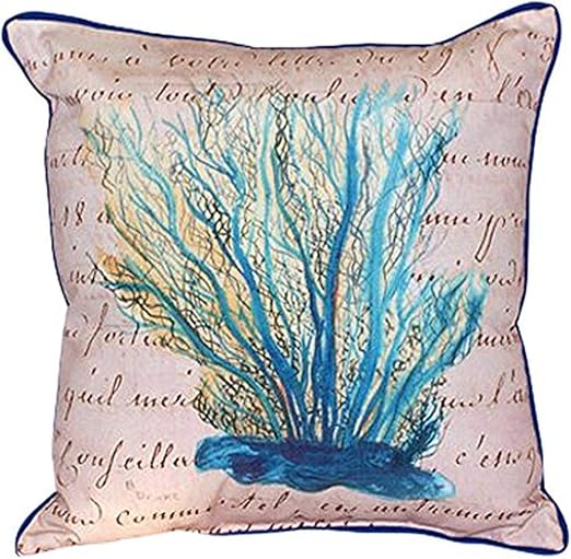 Amazon Com Betsy Drake Blue Coral Pillow 18 X 18 Beige Home