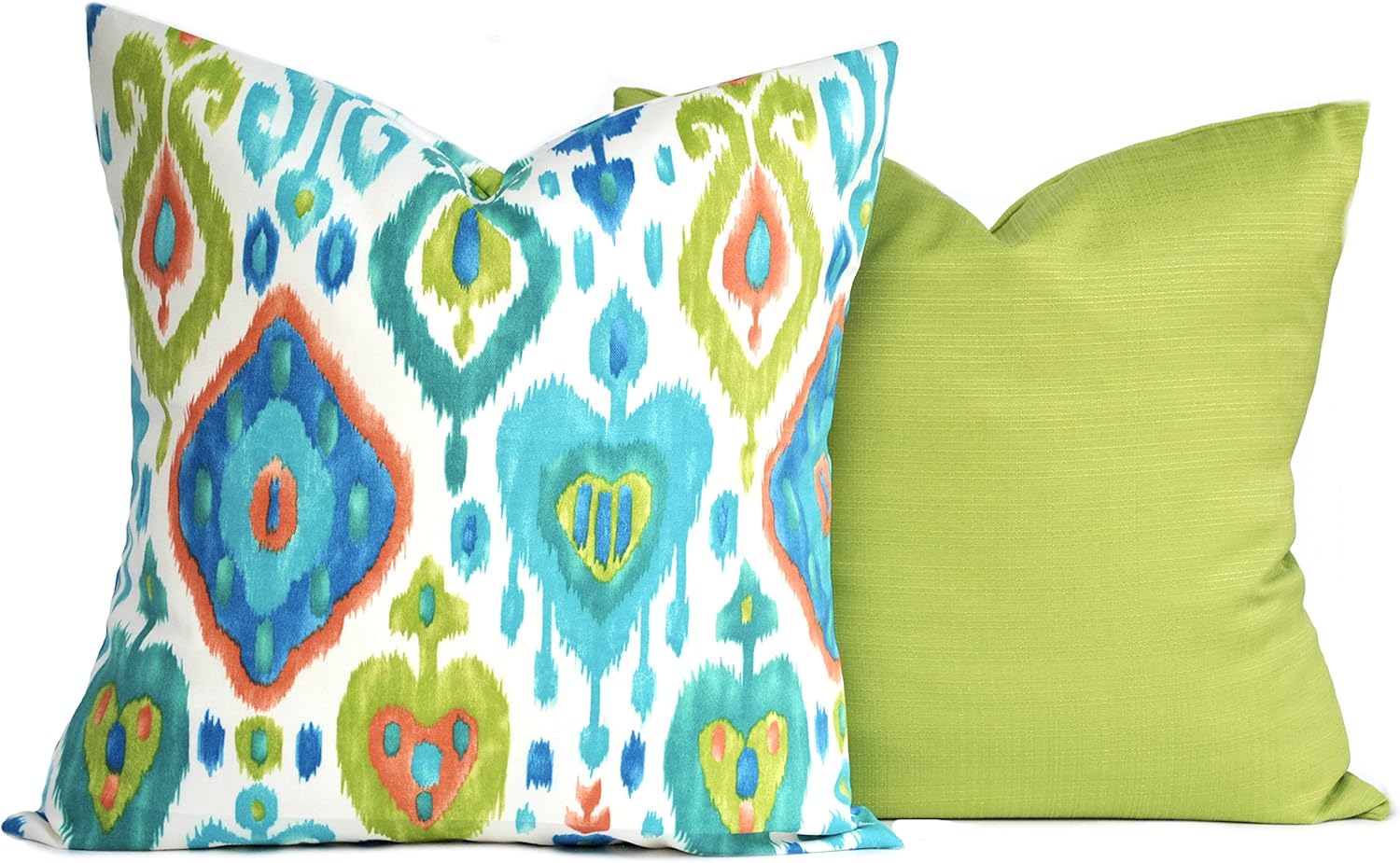 Amazon Com That Dutch Girl Two Outdoor Pillow Covers Ikat Pillow