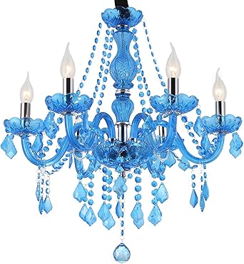 Vast Decorative Blue Crystal Hanging Light Led 6 Head Energy Saving Chandelier Lamp For Living Room 312 Color No Lamp Cover Amazon Co Uk Kitchen Home