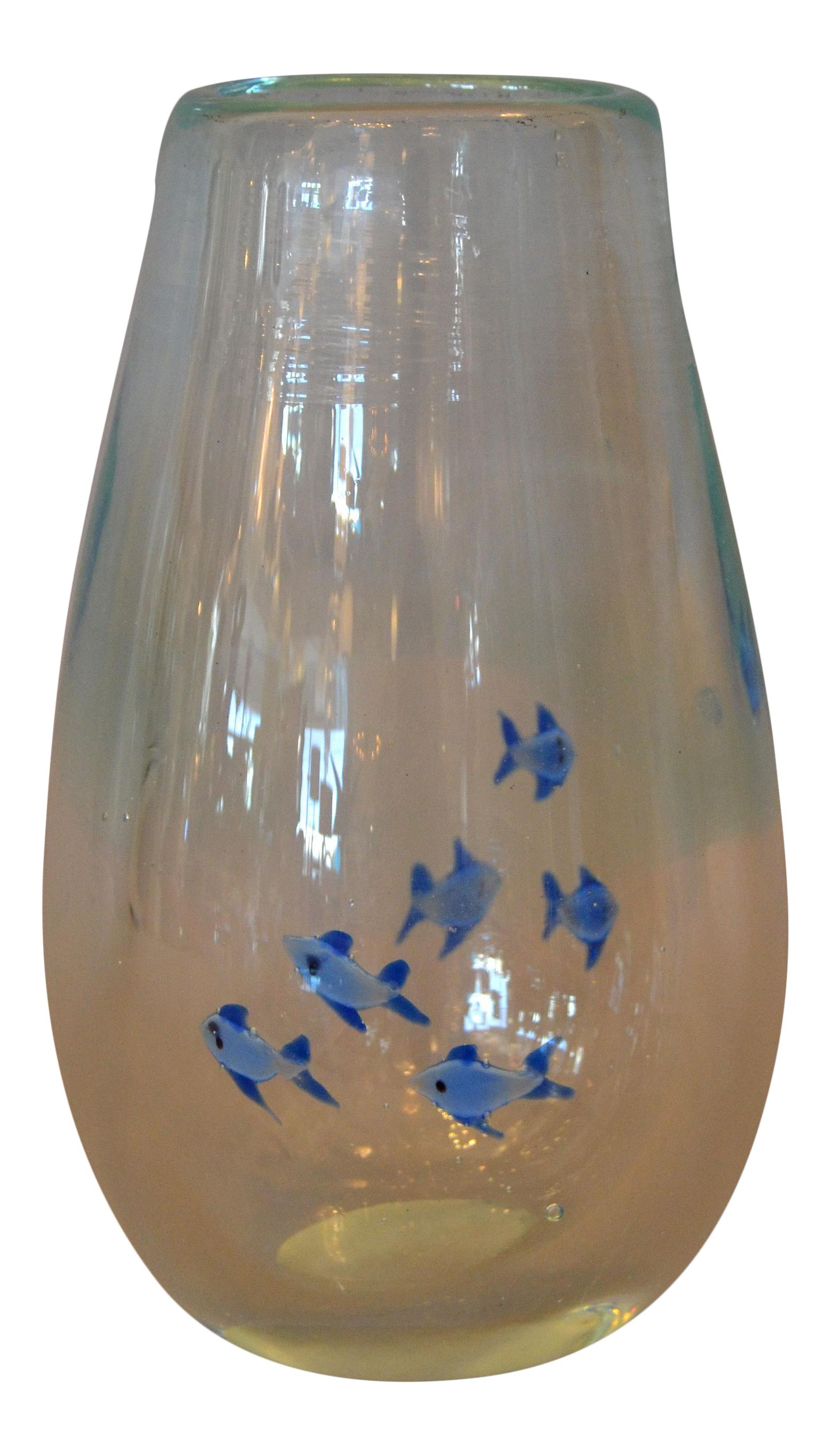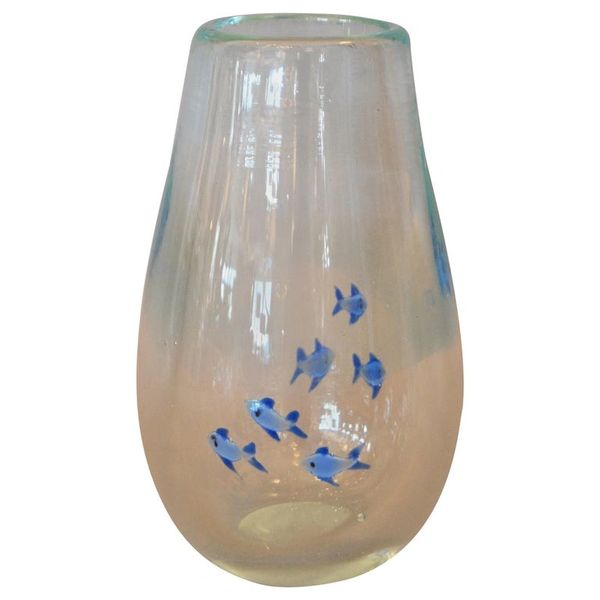 Vintage By Salviati Murano Italy Italian Art Glass Blue Fish Vase