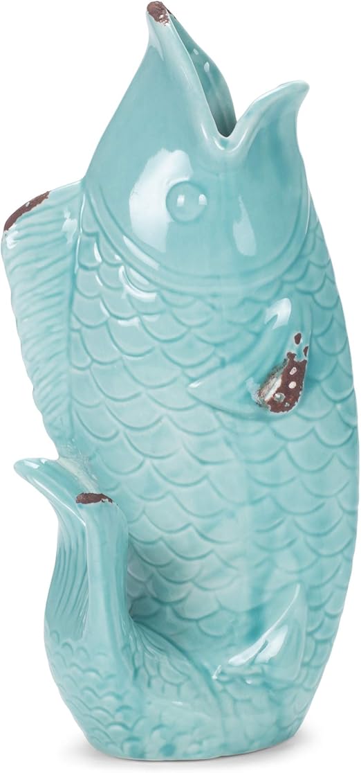 Allen Roth Ceramic Vase Fish 16 5 X 14 X 17 Light Blue