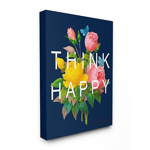Stupell Home Decor Think Happy Floral Canvas Wall Art