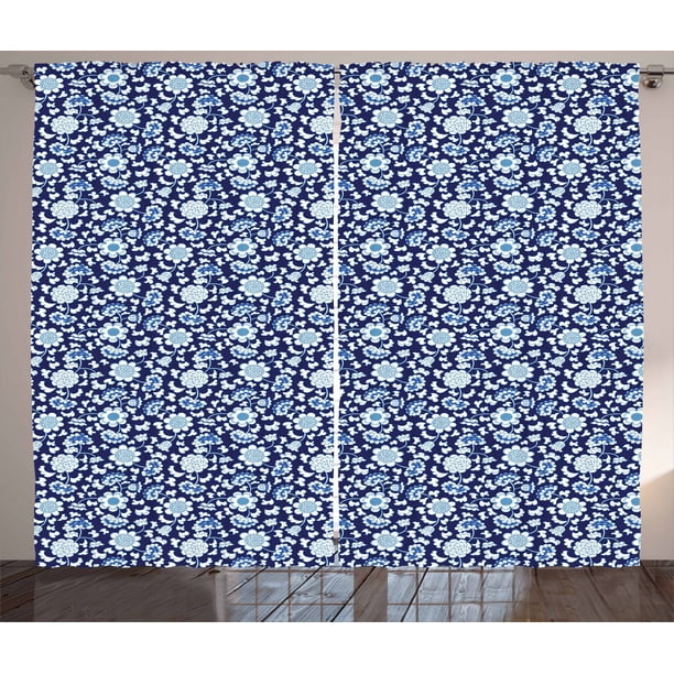 East Urban Home Ambesonne Blue Curtains Chinese Floral Garden