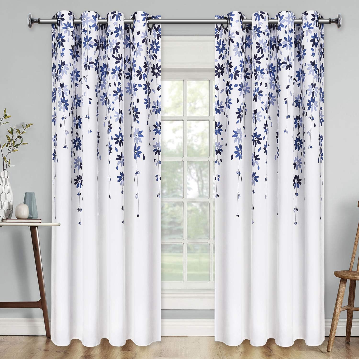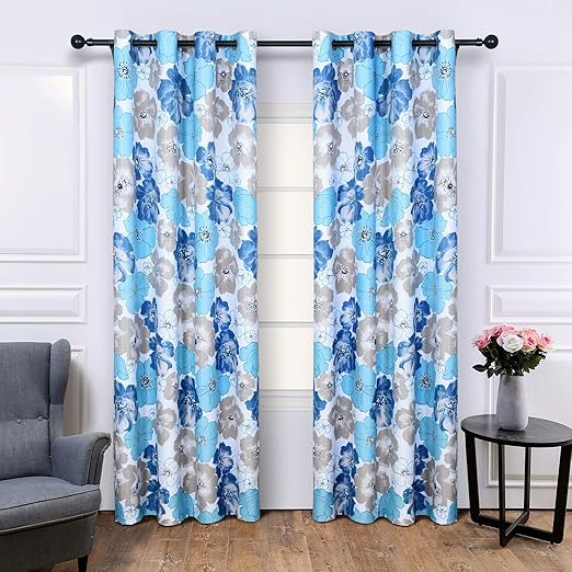 Amazon Com Kotile Blue Floral Print Sheer Curtains Living Room