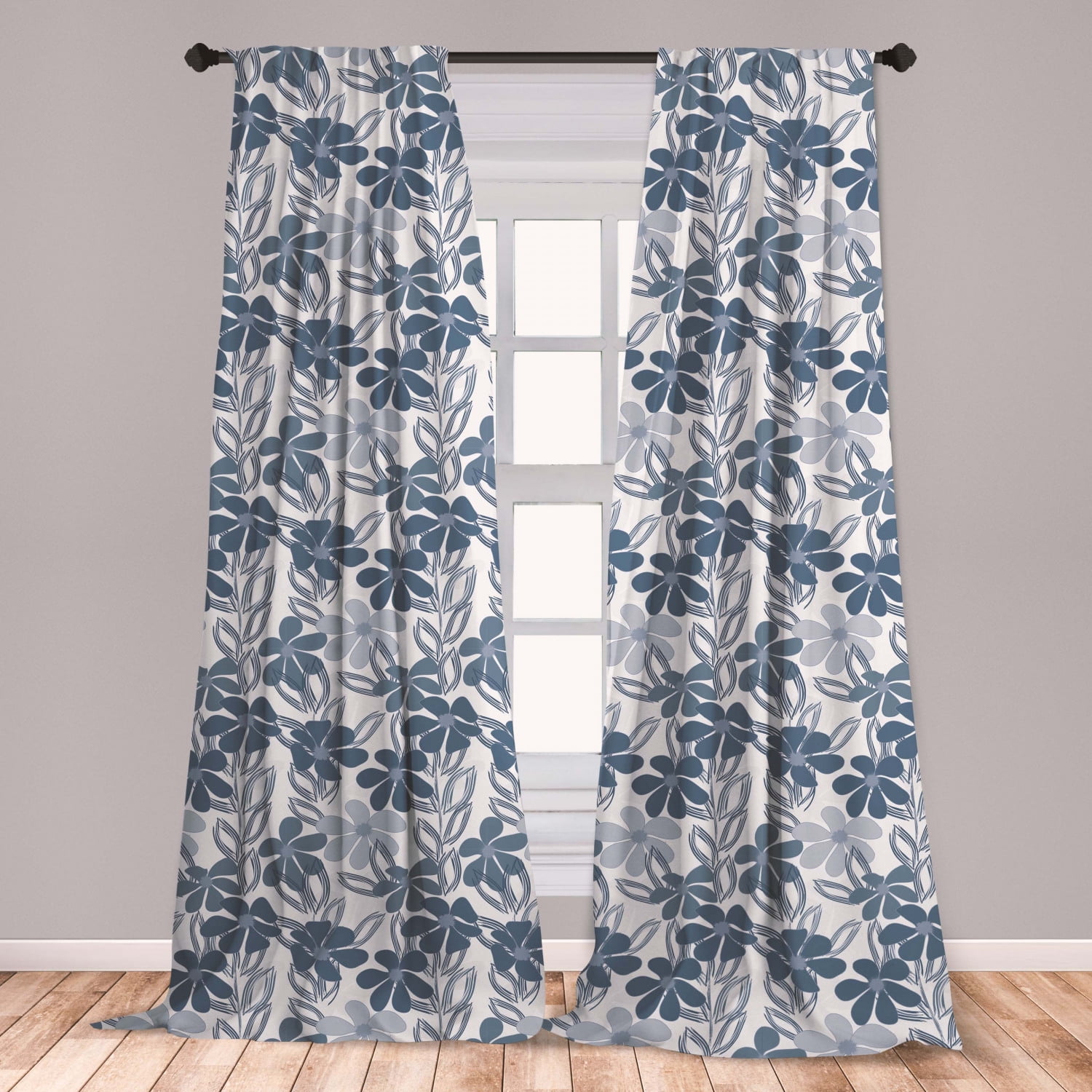 Set 2 Navy Blue Gray Grey White Floral Curtains Panels Drapes 84