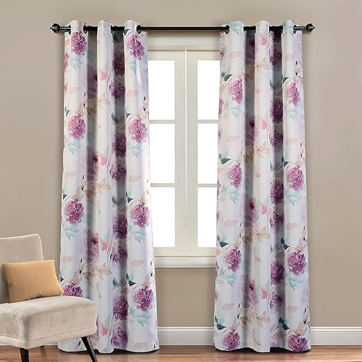Set 2 Pink Purple Blue Floral Window Curtains Panels Drapes Pair