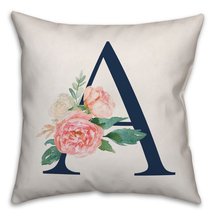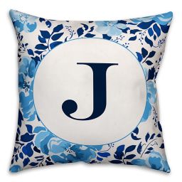 Design Direct Floral Monogram Square Indoor Outdoor Pillow In Blue Bed Bath Beyond