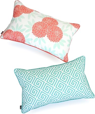 Amazon Com Set Of 4 Indoor Outdoor Decorative Rectangle Lumbar Throw Toss Pillows Yellow Orange Blue Pink Bright Artistic Floral Cancun And White Stripe Choose Size 20 X 12 Arts Crafts