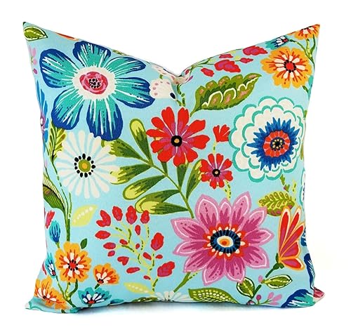 Amazon Com Flowershave357 Blue Outdoor Pillows Orange Turquoise Blue Floral Pillow Cover Decorative Pillowpillow Aqua Pillows Outdoor Outdoor Pillow Coverscm Home Kitchen