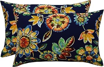 Amazon Com Rsh Decor Set Of 2 Indoor Outdoor 12 X20 Lumbar Decorative Throw Pillows Daelyn Navy Blue Floral Kitchen Dining