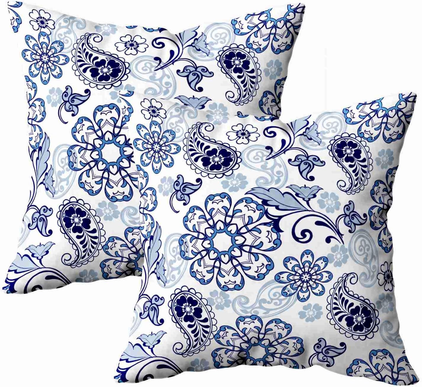 18 Oriental Blue Floral Geometric Pattern Pillow Cover Decorzee