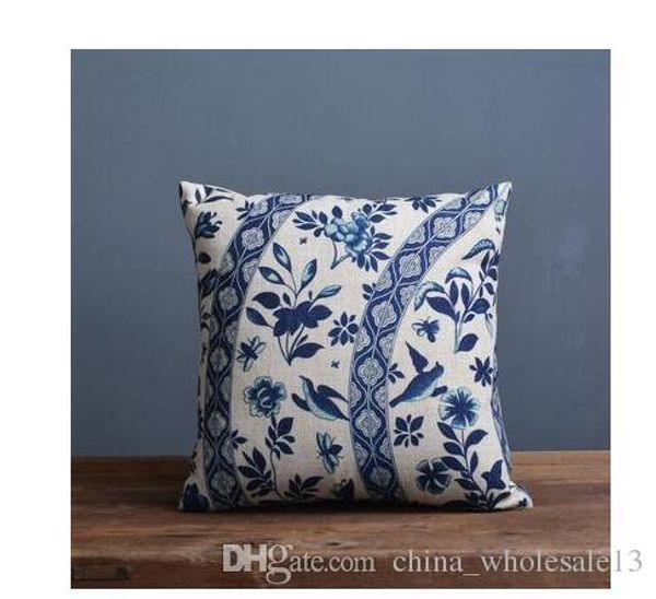 Vintage Blue Floral Pillow Case Cushion Cover Decorative Throw