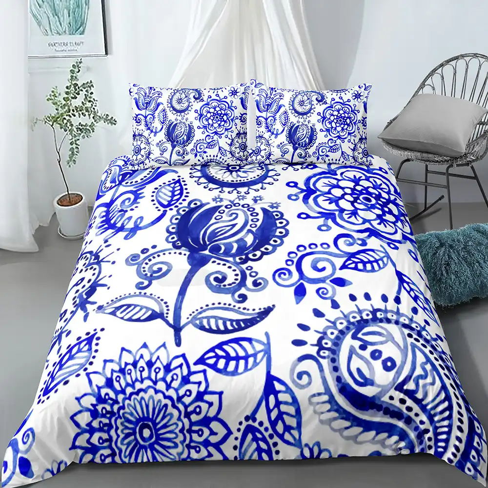Bed And Bed Floral Pattern Quilt Cover 220x240 Cm Blue Buy