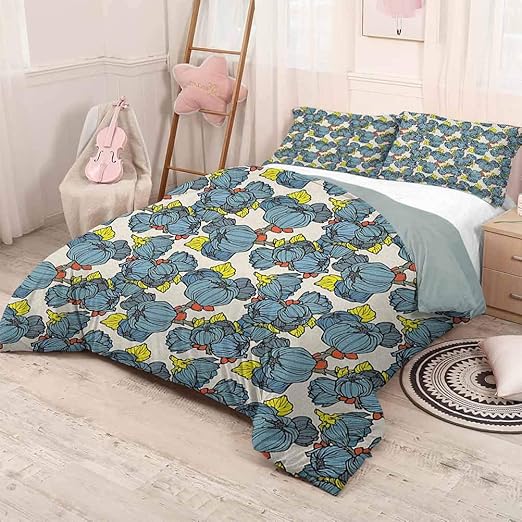 Amazon Com Feyart Bronze Flowers Duvet Cover Set Blue Floral