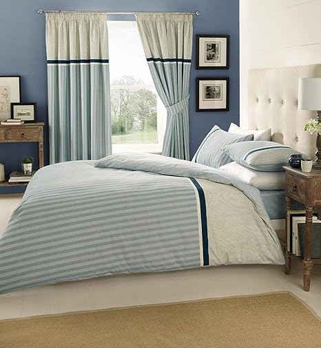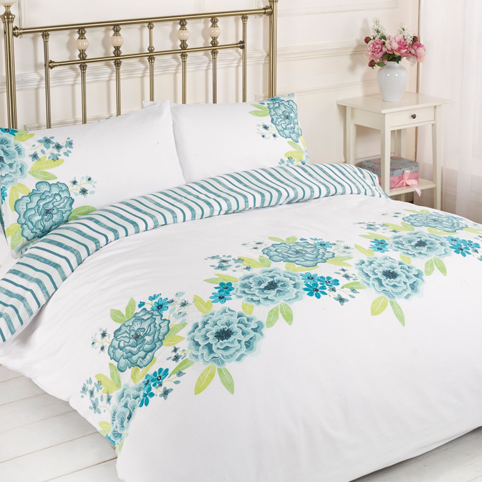 Blue White Bedding Bed Linen Floral Stripe Reversible Duvet