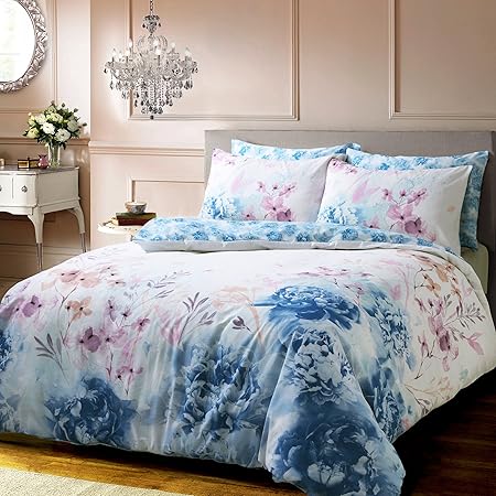 Pure Opulence Penny Blue Floral Rose Pink Vintage Super King Duve
