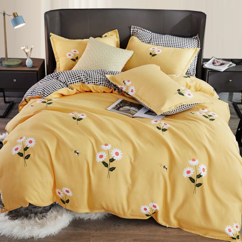 Floral Duvet Cover Sets Cotton Yellow Pink Blue Bedding Sets For