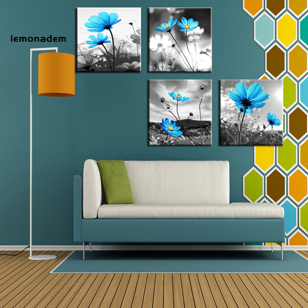 4pcs Set Pretty Blue Flower Canvas Painting On Prints Home