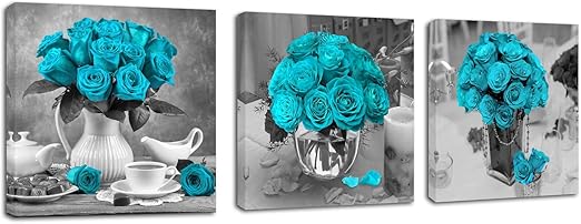 Amazon Com Yatehui Teal Blue Rose Flowers Wall Art Rural Blue