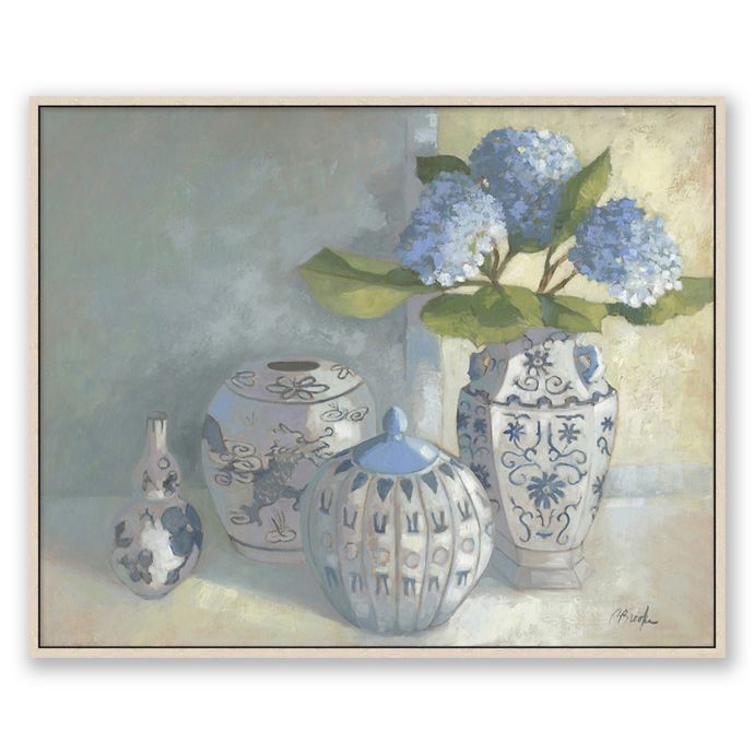 Blue White Vases 27 75 Inch 33 7 Inch Framed Canvas Wall Art
