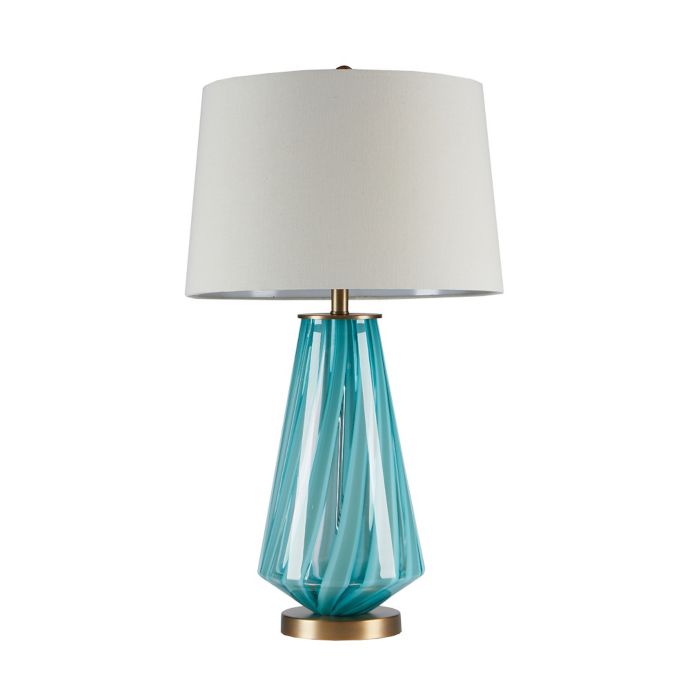 Bloomsbury Blue Glass Table Lamp With Ivory Shade 66304 Cici