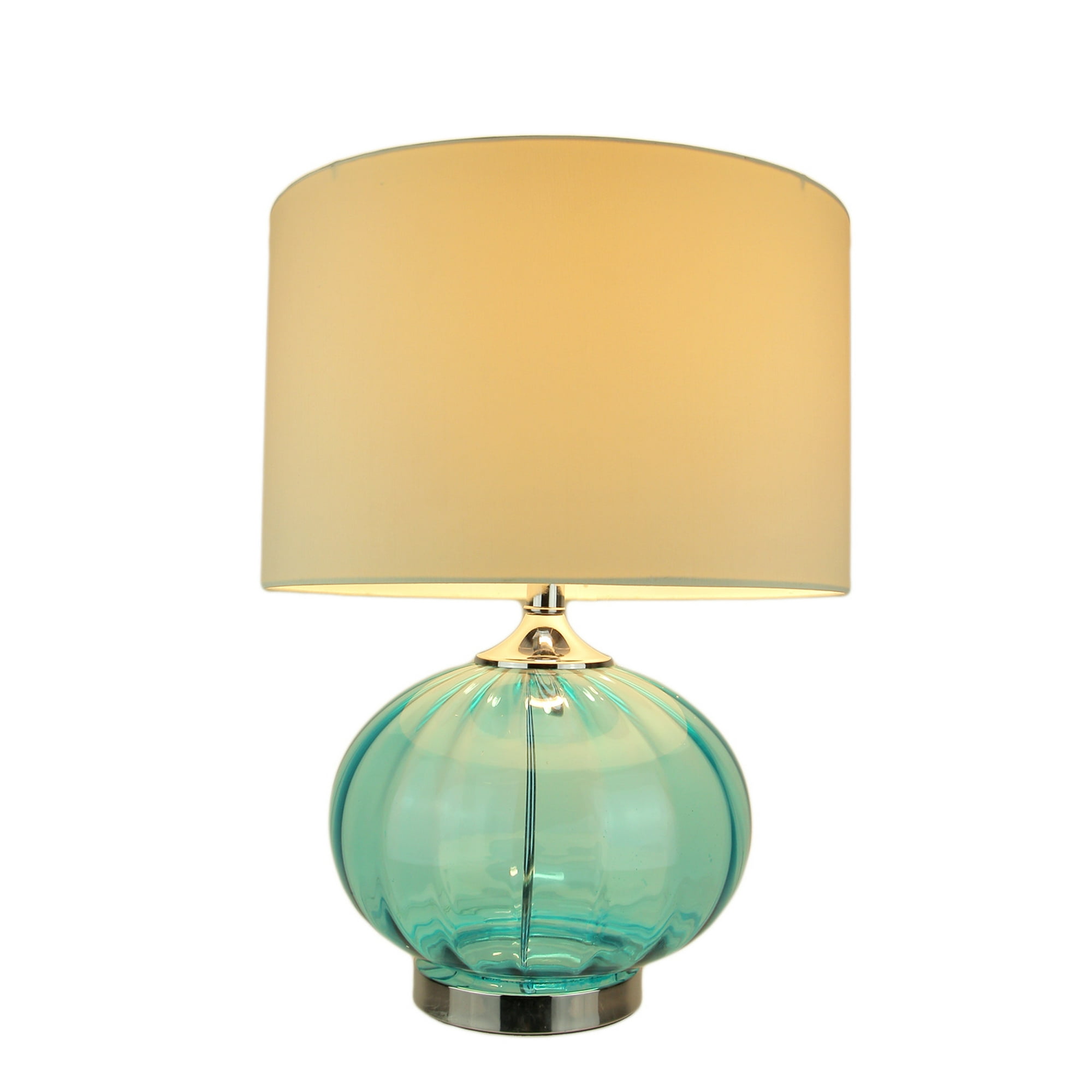 Blue Glass Table Lamp With Fabric Shade Metal Base Salty Home
