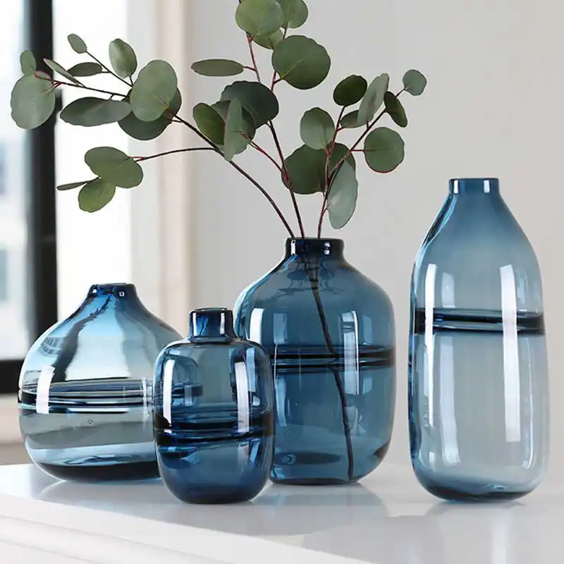 Modern Transparent Blue Glass Flower Vases Decorative Vases Modern