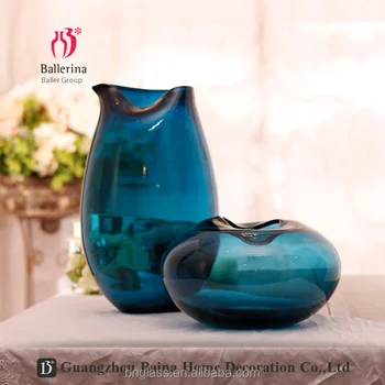 China Hand Blown Art Style Blue Glass Vases Flower Vase In