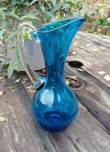 Vintage Blue Glass Vase Or Jug Retro Studio