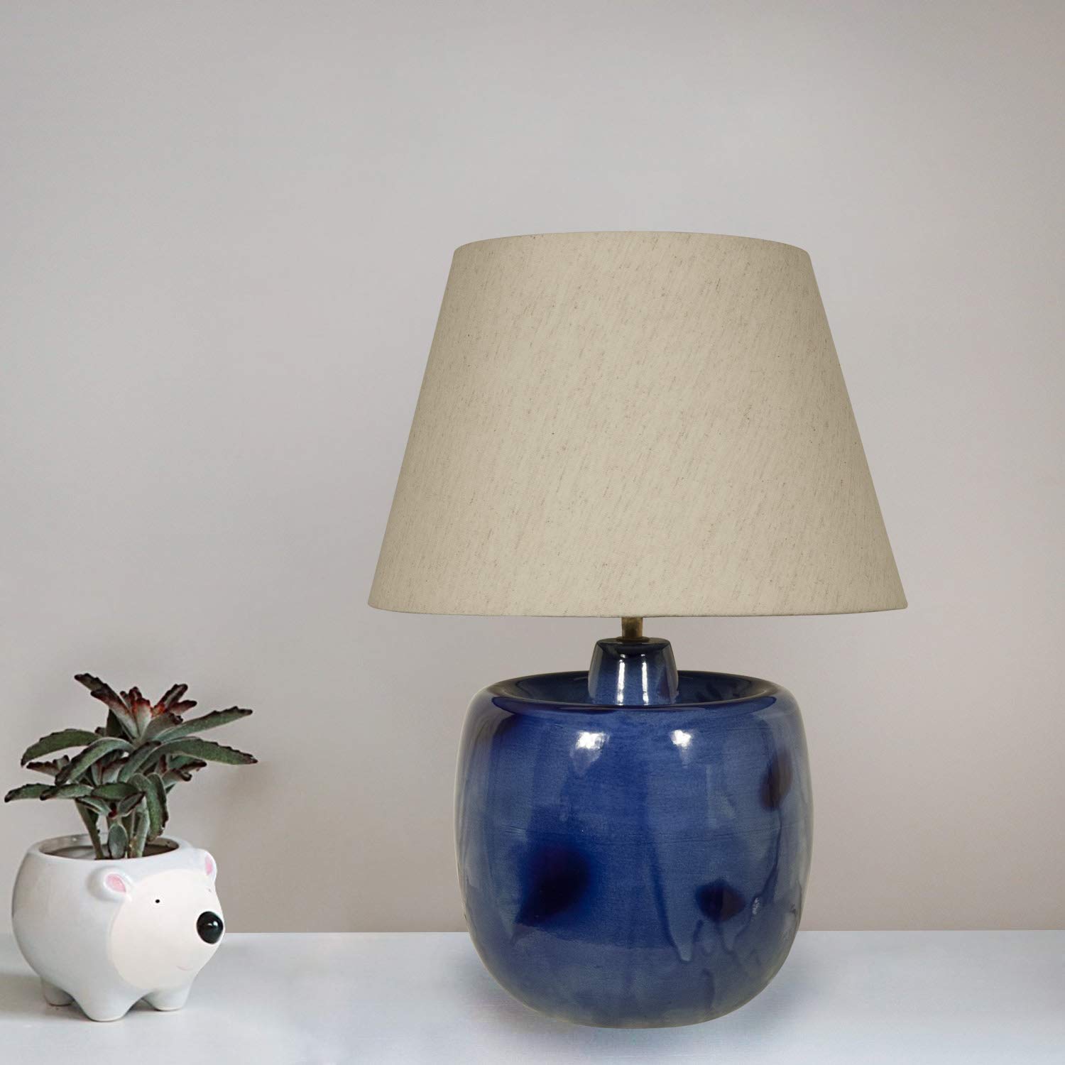 Shaped Blue Glass Lamp With White Shade Decorexi