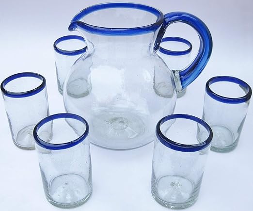 Amazon Com Mexican Blown Glass Pitcher And 6 Drinking Glasses