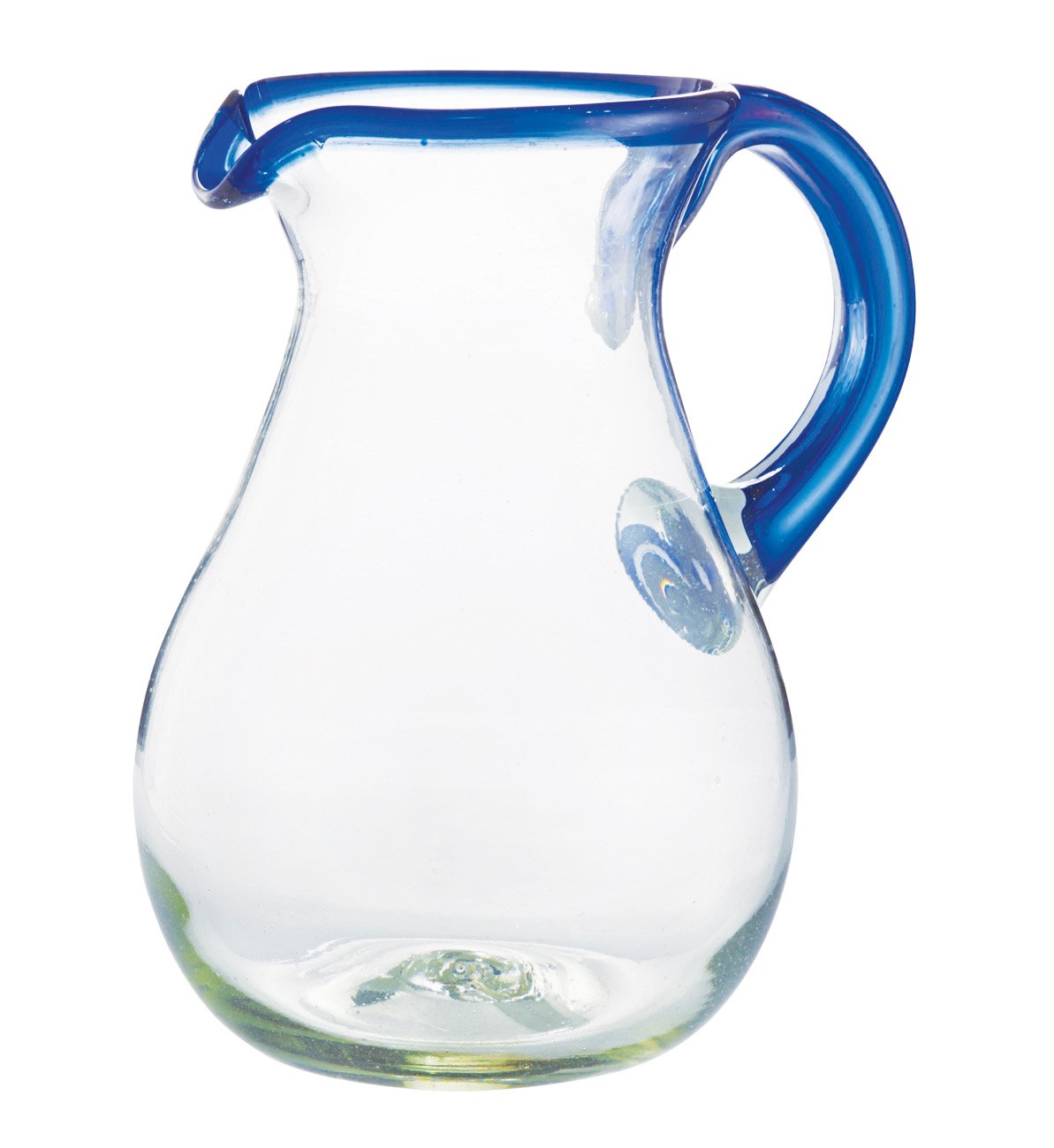 Amazon Com Mexican Blown Glass Pitcher Aqua Blue Rim Drinkware