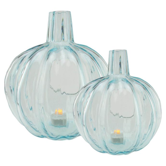 Northlight Glass Pumpkin Candle Holder In Light Blue Bed Bath