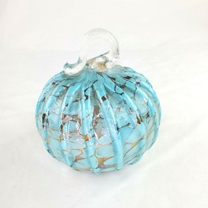 Blown Glass Pumpkin Blue With Gold Stem 1781264624