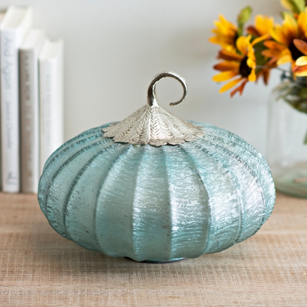 Dogwood Market 3 25 Inch Light Blue Glass Pumpkin Decor Zulily