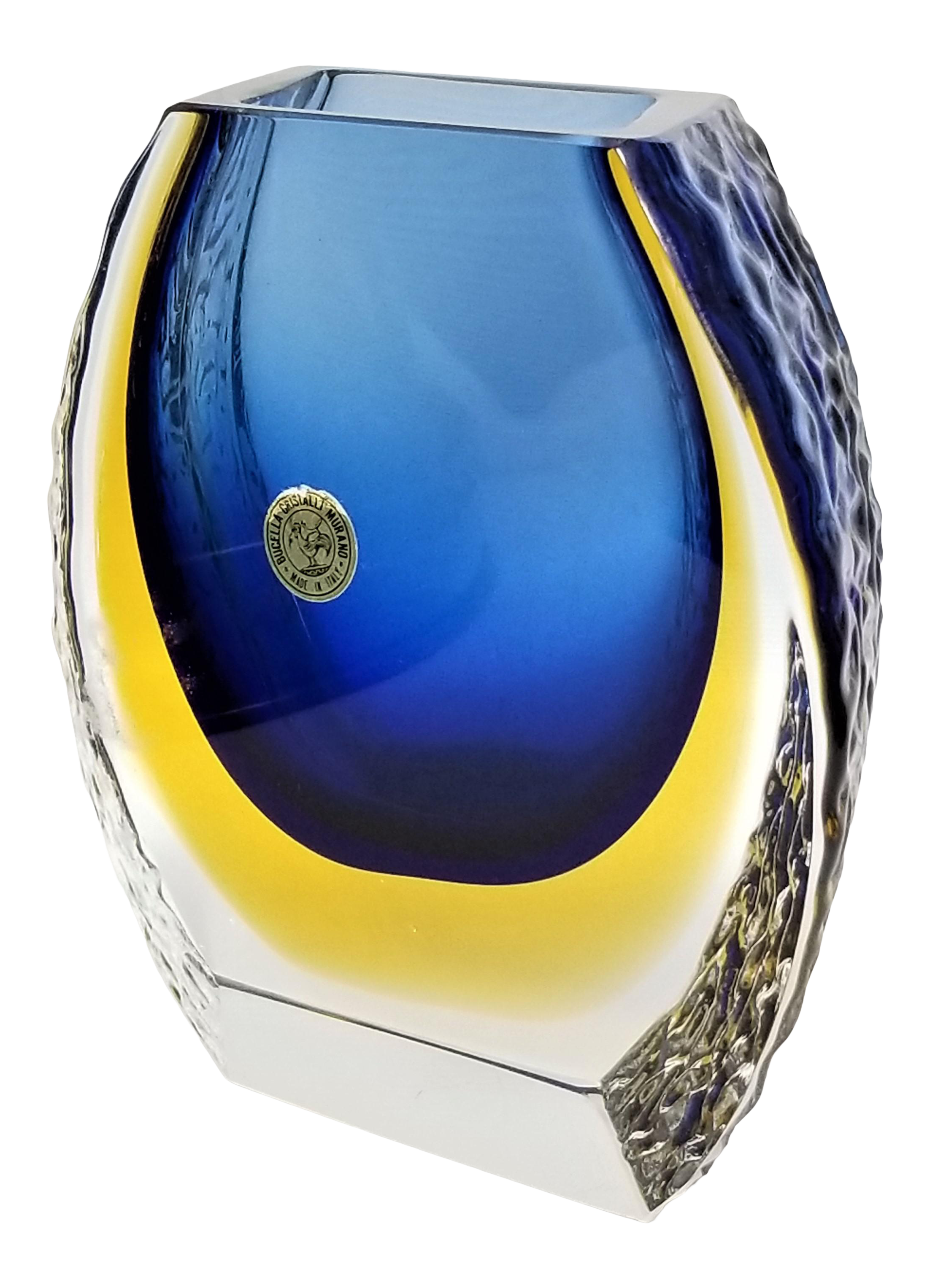 Murano Blue And Yellow Sommerso Glass Vase By Bucella Cristalli