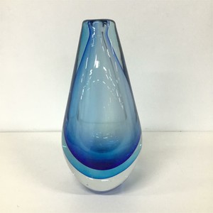 Vintage Blue Glass Vase Blue Glass Clear Vase Ialian Glassware Mid