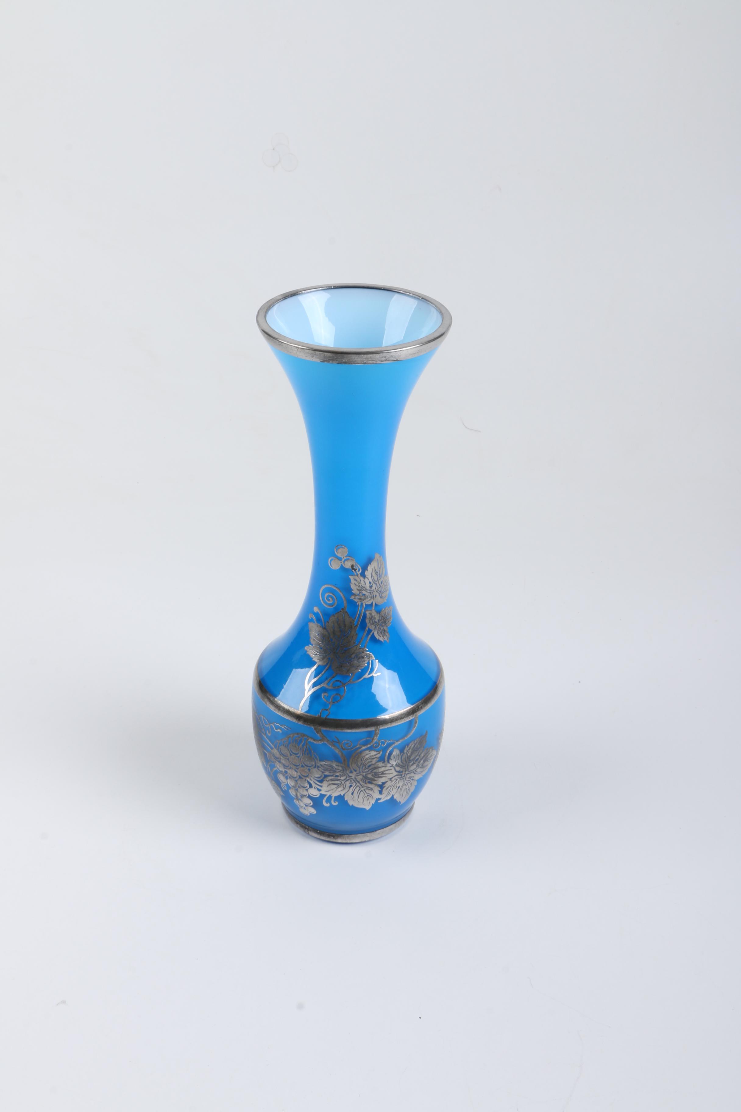 Sterling Silver Overlay Blue Glass Vase Sale Number 2303 Lot Number 124 Skinner Auctioneers