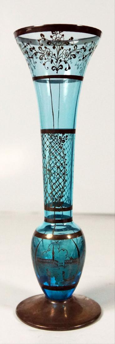 Vintage Venetian Silver Overlay Cobalt Blue Glass Bud Vase Etsy