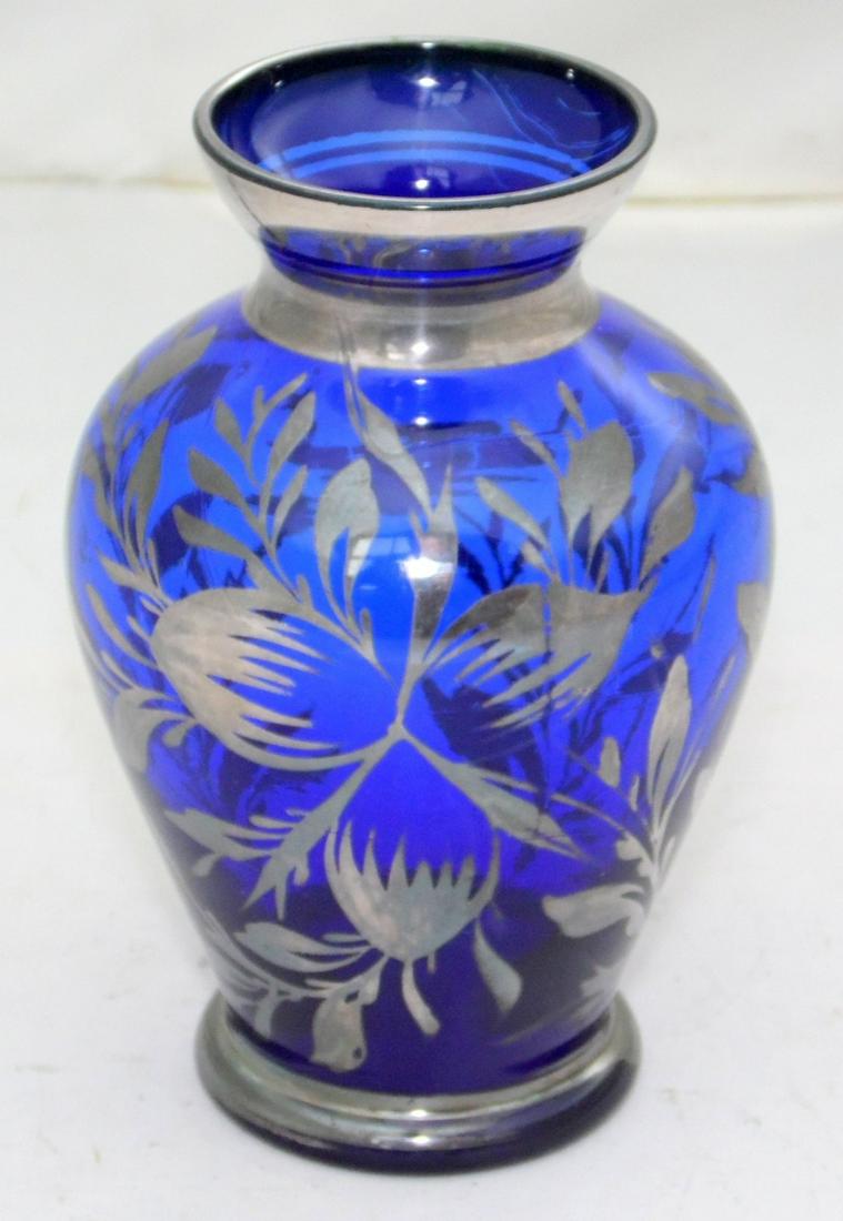 Cobalt Blue Glass Vase With Silver Overlay Lot 3012 1827296802