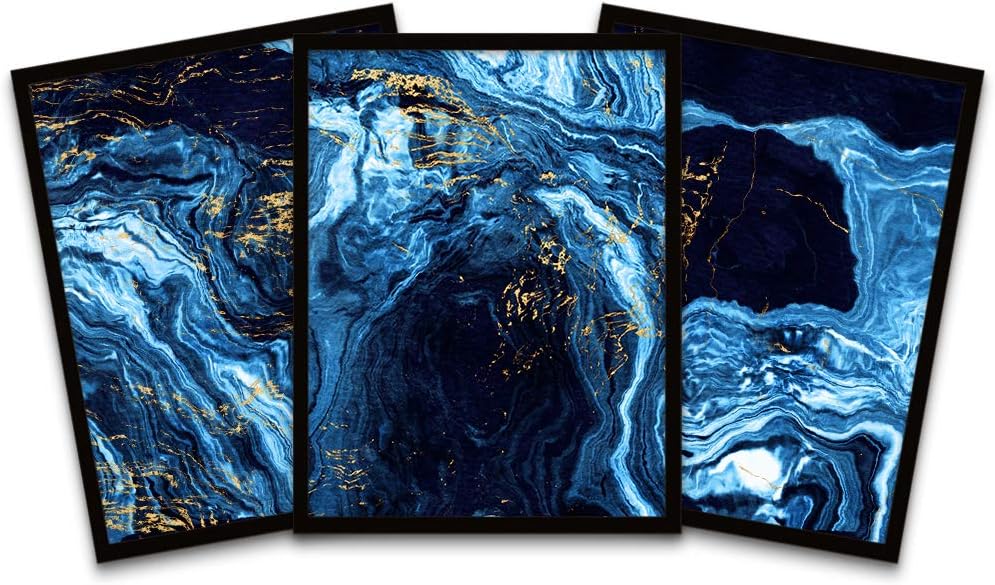 Blue Gold Marble Abstract Photo Art Print Poster Framed Wall Art