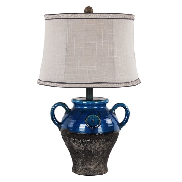 A Homestead Shoppe Lyon Blue Ceramic Table Lamp Gray Shade