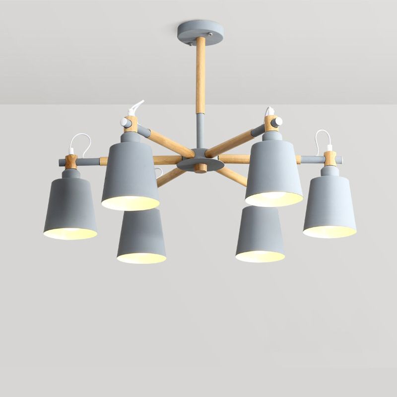 Nordic Style Dome Chandelier Rotatable Metal 6 Lights Blue Gray
