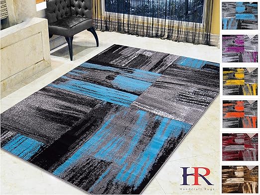 Amazon Com Handcraft Rugs Blue Gray Silver Black Abstract