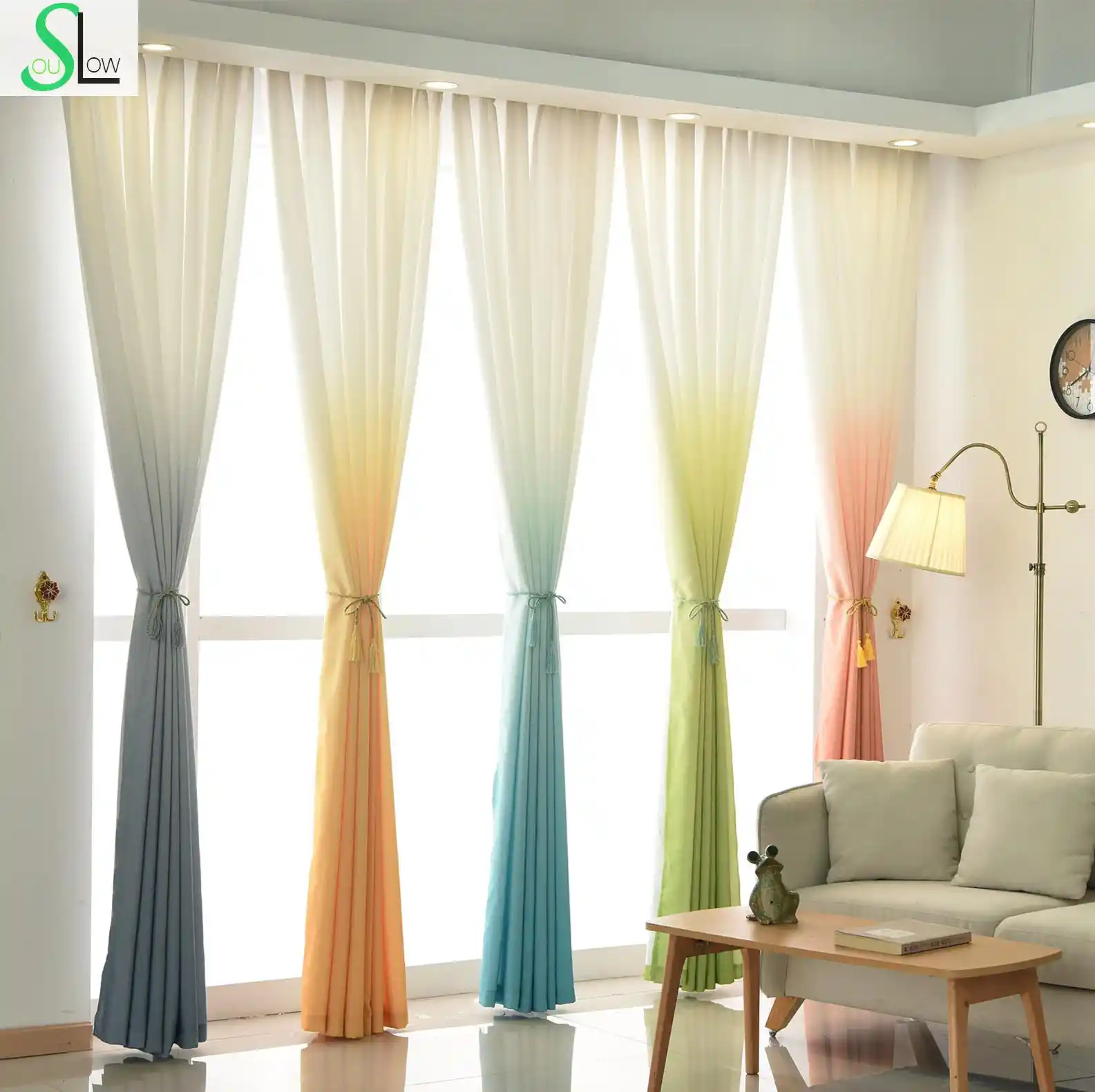 High Grade 5 Gradient Color Yellow Blue Gray Pink Green Curtain