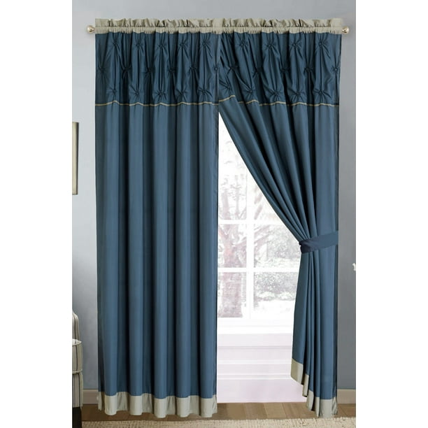 Complete 5 Pc Damask Semi Sheer Window In A Bag Curtain Set Blue