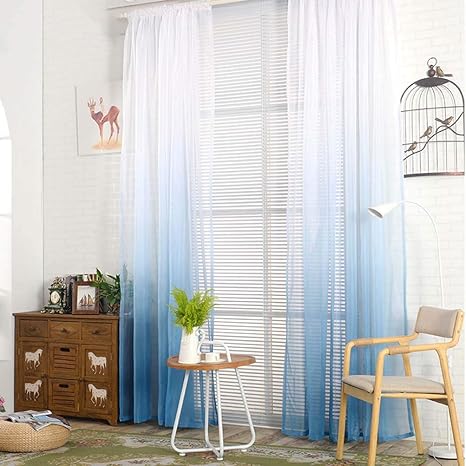 Yjbear Polyester Gradient Sheer Curtains For Living Room Rod