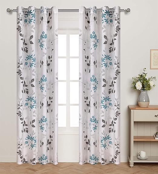 Hlc Me Teal Blue Floral Sheer Curtain Panel Set Of Two Zulily